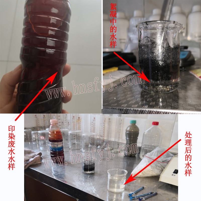 河北的張先生寄來的印染廢水水樣,經(jīng)過實驗添加不同量的凈水藥劑產(chǎn)品,經(jīng)過絮凝沉淀,后經(jīng)脫色處理后呈現(xiàn)出清澈透明的水樣。本實驗在常溫下即可完成了脫色處理達到排放標,客戶張先生很滿意,決定采購我們的凈水藥劑產(chǎn)品投入到印染廠生產(chǎn)過程產(chǎn)生的廢水中,我們?yōu)樗峁┫嚓P(guān)的凈水藥劑產(chǎn)品聚丙烯酰胺和聚合氯化鋁,持續(xù)為他提供技術(shù)支持。
